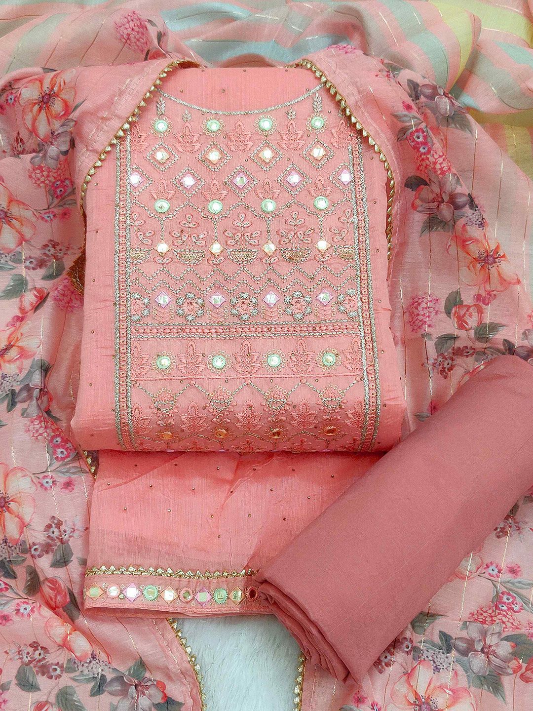 TAVAS presents this elegant Pink Dress Material crafted for Women. Made using premium Not Available, this outfit features a refined Not Available silhouette, a stylish Not Available neckline and Not Available. The Not Available hemline and Not Available length complete the look. Perfect for Festive wear.