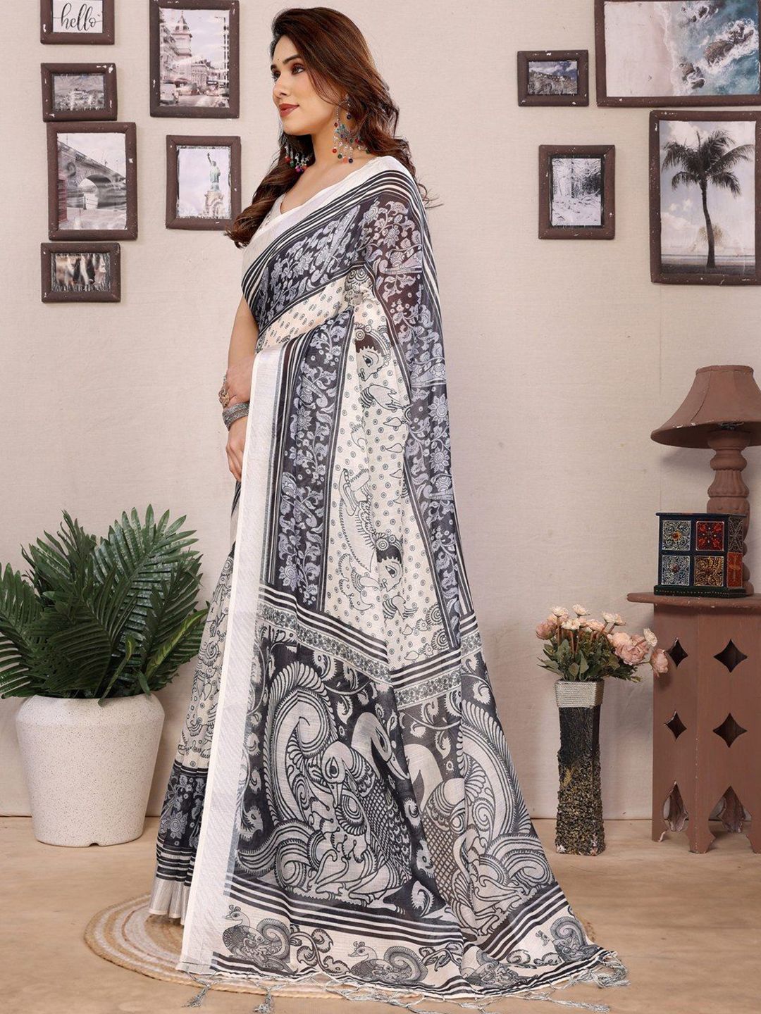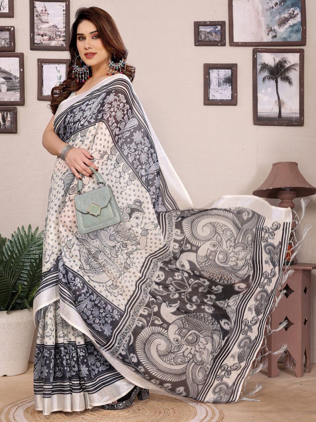 Pure Linen Block Print Saree