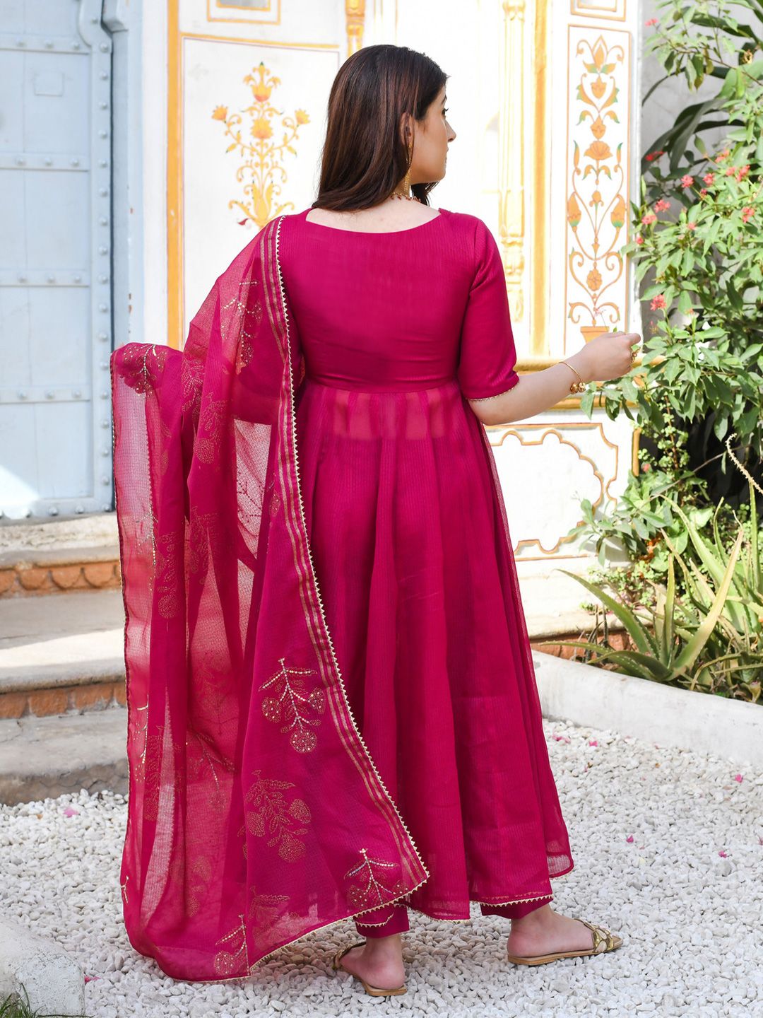 GoSriKi presents this elegant Pink Kurta Sets crafted for Women. Made using premium Not Available, this outfit features a refined Not Available silhouette, a stylish Round Neck neckline and Three-Quarter Sleeves. The Not Available hemline and Not Available length complete the look. Perfect for Festive wear.