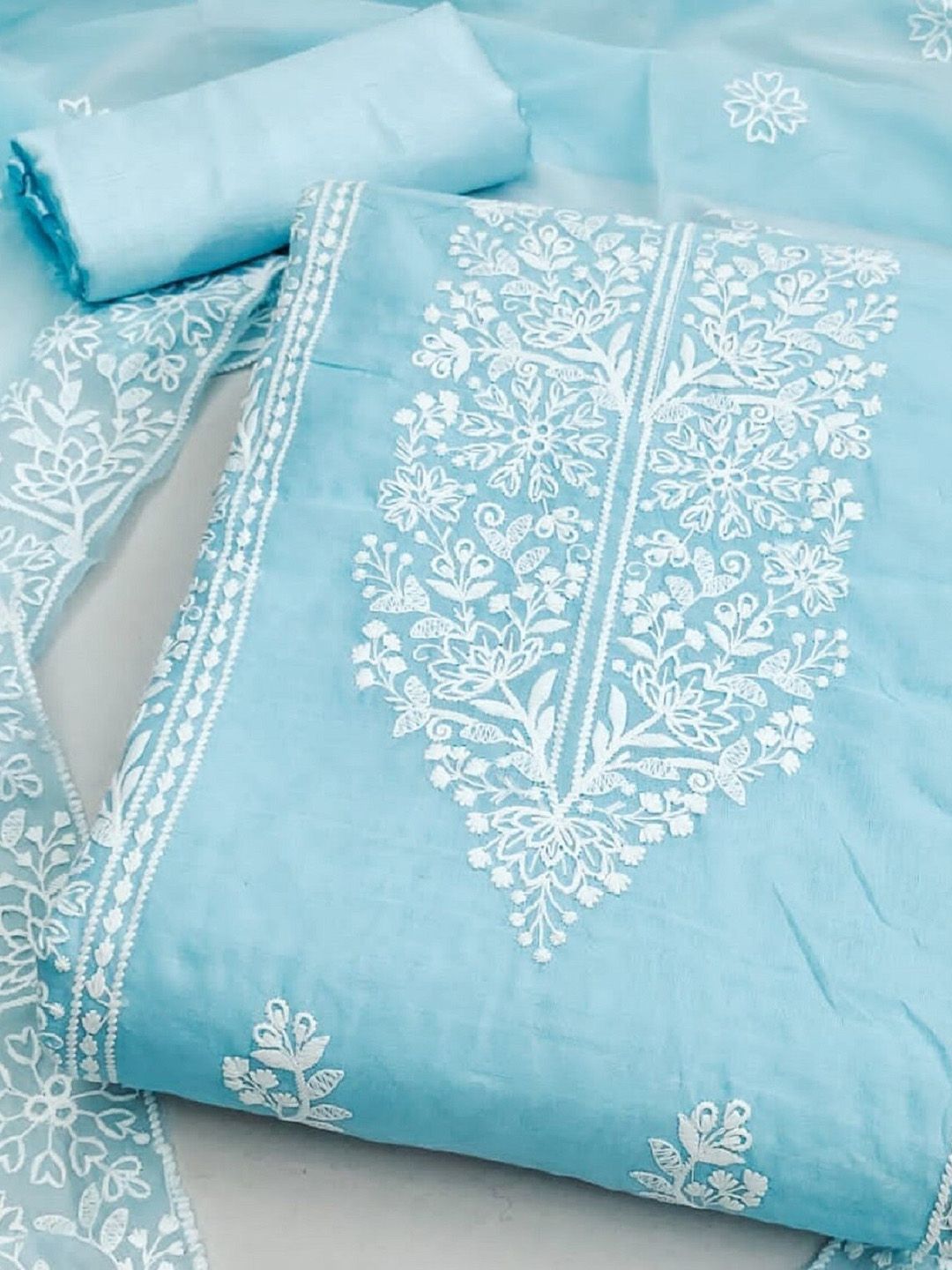 KALINI presents this elegant Blue Dress Material crafted for Women. Made using premium Not Available, this outfit features a refined Not Available silhouette, a stylish Not Available neckline and Not Available. The Not Available hemline and Not Available length complete the look. Perfect for Festive wear.