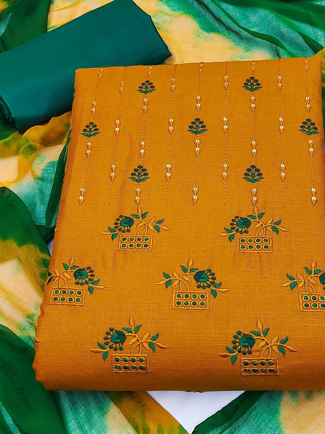 KALINI presents this elegant Yellow Dress Material crafted for Women. Made using premium Not Available, this outfit features a refined Not Available silhouette, a stylish Not Available neckline and Not Available. The Not Available hemline and Not Available length complete the look. Perfect for Festive wear.