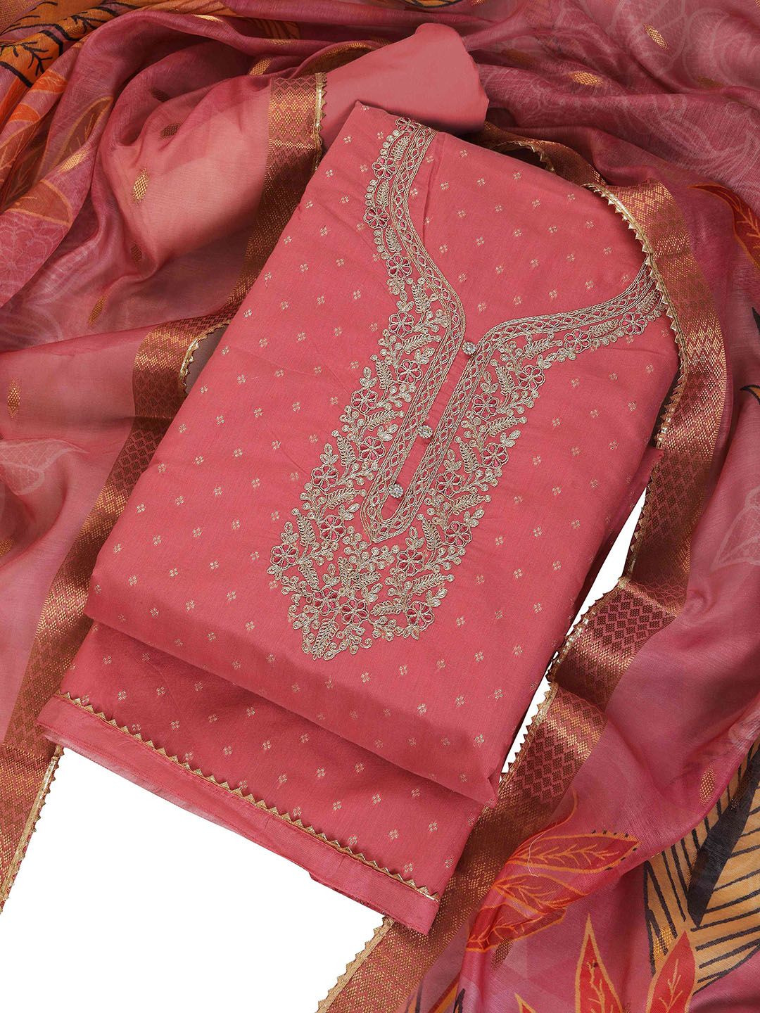 TAVAS presents this elegant Peach Dress Material crafted for Women. Made using premium Not Available, this outfit features a refined Not Available silhouette, a stylish Not Available neckline and Not Available. The Not Available hemline and Not Available length complete the look. Perfect for Festive wear.